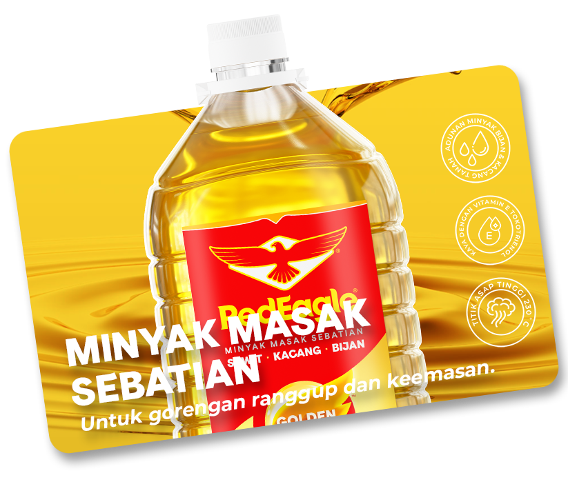 Selama turun-temurun, Red Eagle bukan sekadar pelengkap di kuali. Kami menjadikan setiap titisan satu rasa keemasan, dan setiap hidangan satu detik kebersamaan. Lebih daripada sekadar minyak, kamilah rakan masakan yang anda percayai.