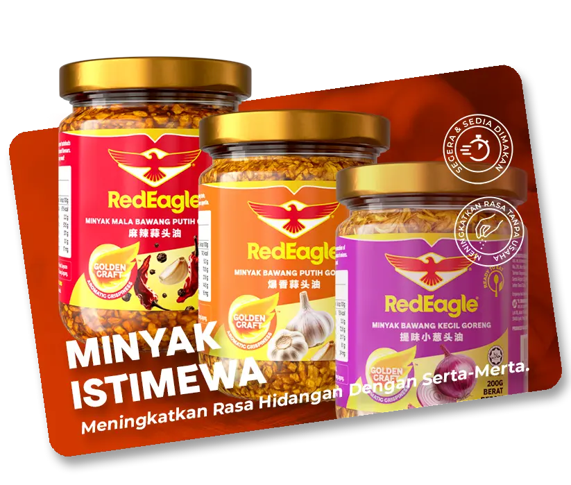 Bermula dengan minyak masak sebatian, kini berkembang kepada rangkaian minyak istimewa dan bihun. Red Eagle bukan sekadar jenama, tetapi Rakan Masakan Keemasan yang menjamin kualiti dan mengeratkan hubungan di setiap sajian.